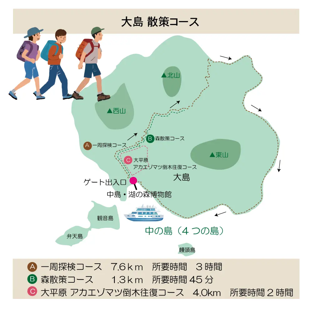 コースは3つ設定されていて、短いコースは観光で上陸した人も森林浴をしています。